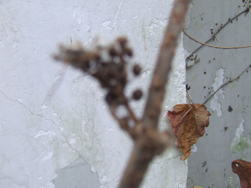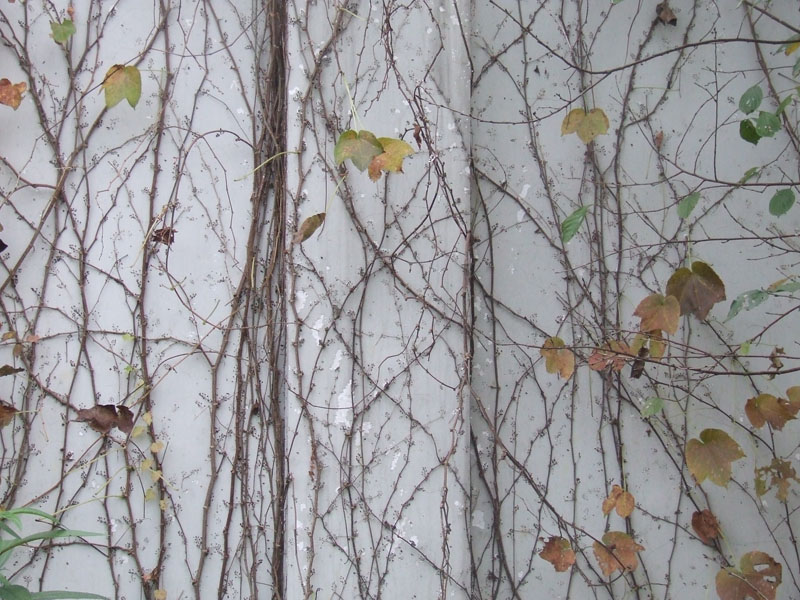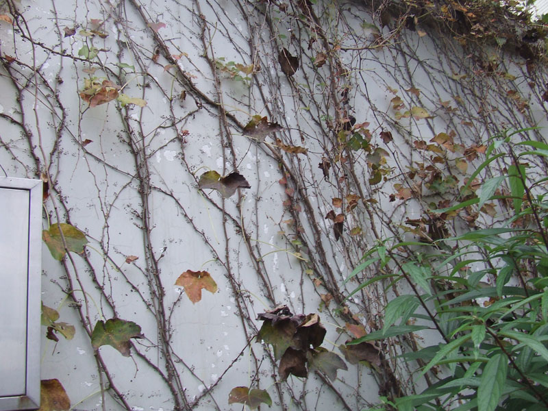 虽然爬山虎秋天已是枯枝落叶,但小脚依然牢牢地扒在墙上,一动不动,守卫着这家人。我喜爱这种具有顽强精神的爬山虎。