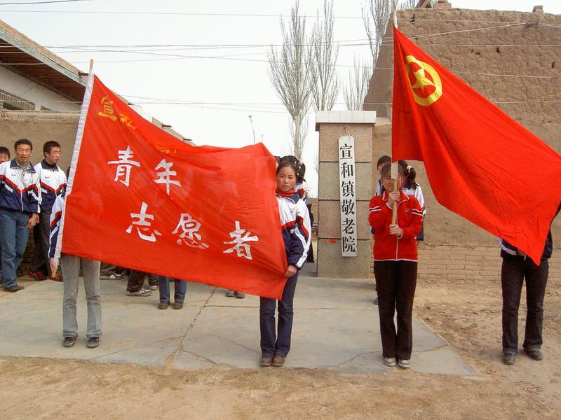 今天是一个特殊的日子,我们由团委的老师带队,所有的团员组成了志愿者代表宣和中学戴上了礼物去看望那些身患残疾的伯伯们,我们高举着旗帜,兴高采烈的出发,最后到达了宣和镇敬老院。