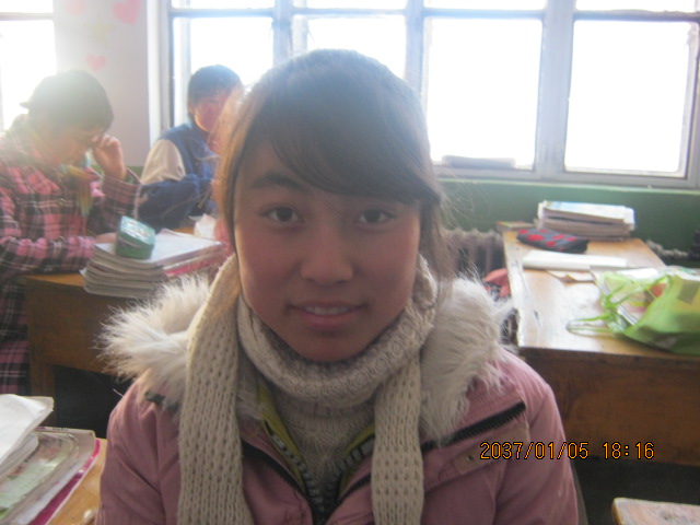 一对大大的眼睛镶嵌在又黑又浓的眉毛下,高高的鼻梁下一张不大不小的嘴,头上扎着一把马尾巴似的辩子,构成了一个活泼机灵的我。