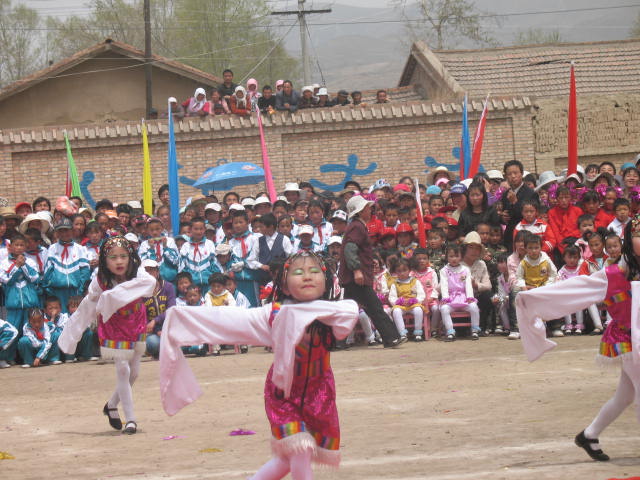 来到学校,同学们穿着整齐的演出服,脸上都露出灿烂的笑容,在等待开幕式的到来。激动人心的时刻到来了,校长隆重宣布桦林乡中心学校第二届田径运动会开幕了。一个又一个节目上台了,幼儿园小朋友排练的《小小格桑花》,小学生排练的《快乐的小蜻蜓》,九年级同学排练的韵律健美操,当然最气派的还是我们七年级排练的腰鼓表演和广场舞《爱我中华》了。腰鼓队的同学们身着黄色的民族服装,一个个小鼓跨在腰间,变换各种姿势的同时还会打出动听的鼓点,威武极了。至于我有参与的广场舞,那更是宏伟。六十多名同学组成的方块,每位同学左手拿扇,右手拿旗,根据音乐的节奏变换各种图案,不时博得一阵阵掌声。