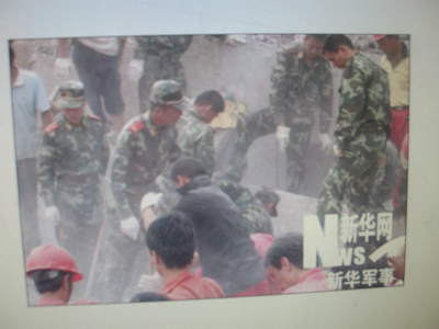 就像《地震中的父与子》一样,在地震后的废墟下,儿子并没有害怕,没有哭。他鼓励着和他在一起的同学们,让他们不要哭,要坚强起来,勇敢去面对。因为他相信,他的父亲会来救他们的。最后,当武警官兵和父亲一起把他们挖出来时,他却让其他同学先出,自己最后出来了。看到这些,我深受感动。当我们遇到困难时,我们也要像他一样去勇敢面对。