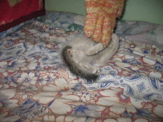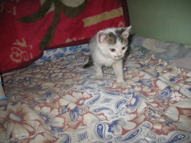 它悄悄的来了。那一年我正是十一岁。放了暑假,我就在姑姑家玩。开学了,我回到家来,看见家里有只猫,我不知道是怎么来的,反正长的很可爱。一双带斑点的耳朵。一张犹如拳头大小的脸上镶嵌一双炯炯有神的大眼睛,大得出奇。嘴的两边有长长的胡子,我一拔,它就喵喵叫起来,胡子上下动着,惹人喜爱。