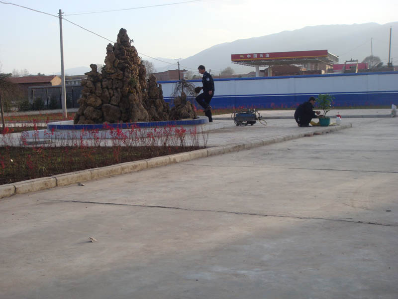 新建的派出所有两层,表面被涂料所装饰,两个挺大的花园,由花围成。站在公路上往里面看,一派生机勃勃的样子,那新的建筑,夹杂着水锈石的盆景是那么的美丽,新的派出所一切都是那么崭新,厨房、洗澡间设施齐全。