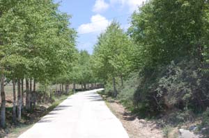 现在经过工人叔叔的无数次改造,它已经变成了一条用水泥砌成的马路。这条马路十分宽阔,可以并列行驶二辆卡车。路旁有一些杨树,还有一些小花,它们把这条小路装扮得更加美丽。