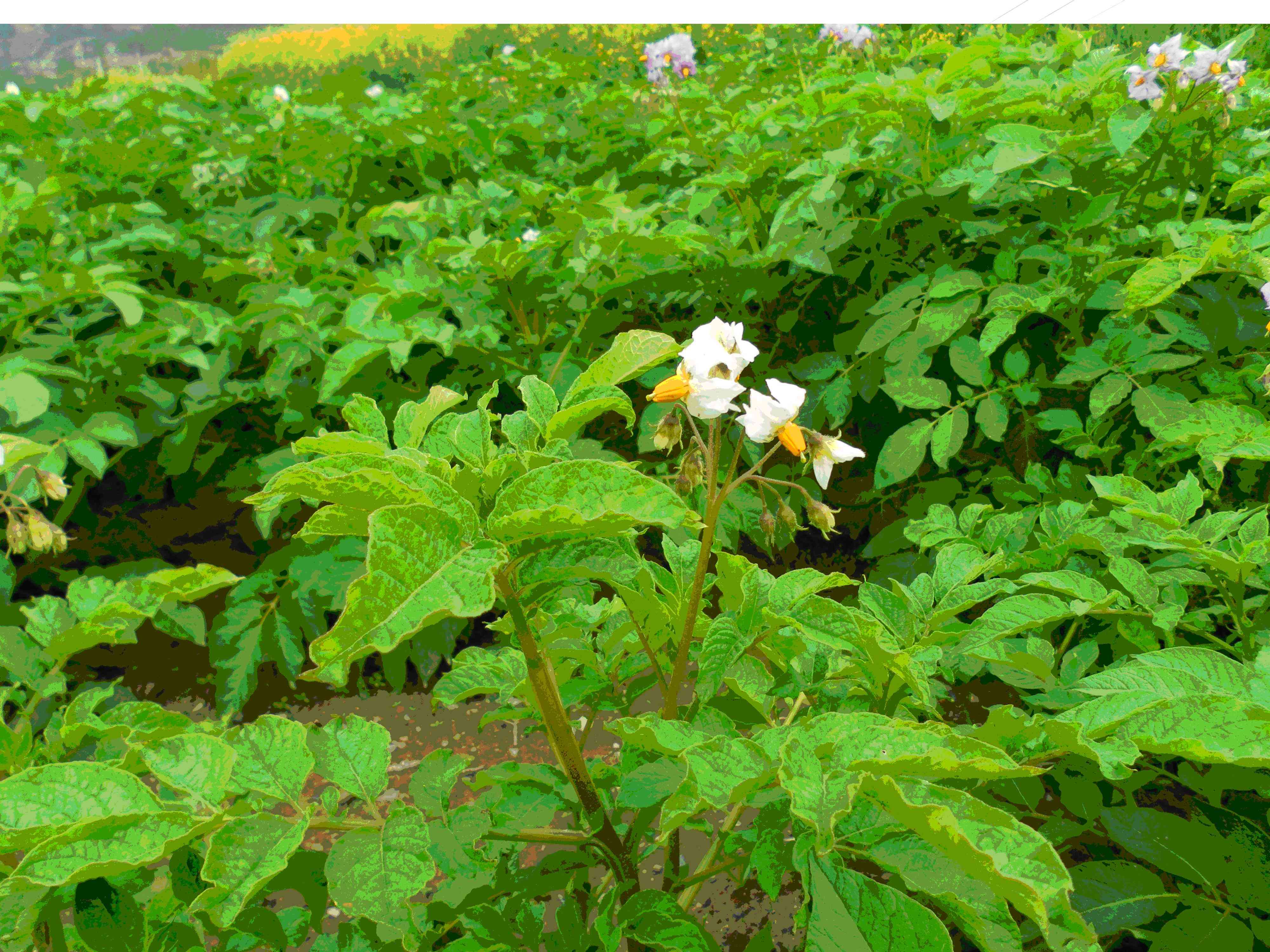 爸爸妈妈把椭圆形的洋芋切成三角形的小块,埋种下地,经过土地妈妈的滋养,洋芋种子的肚脐眼里抽出一根根小豆芽形状的芽,没过几天,小芽破土而出,长出一片片了嫩绿的叶子。