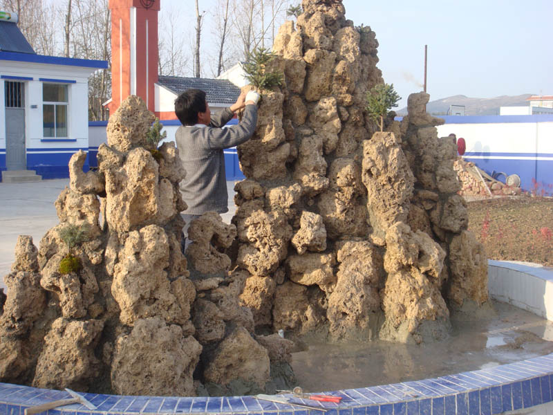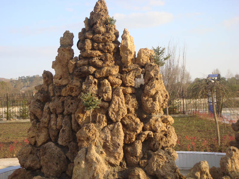这种盆景一块可以独自成为一道风景线,许多块垒在一起就可以成为一道更加亮丽的景色。那人造的山体,美妙绝伦。