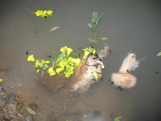 我想和它们玩一玩,所以就摘来许多小花小草洒在水面上,希望它们赏赏光,这小不点也真给面子,醒来后就洗吸了过来,里三圈外三圈,乌黑的小脑袋擎着五颜六色,各式各样的花,尾巴摇来摇去的可美丽了。