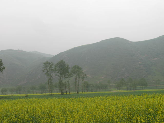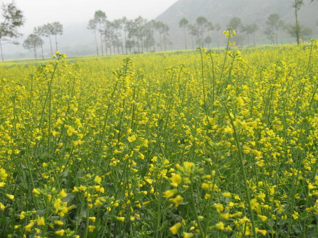 远处,一片狭长的油菜田绕过山梁顺着平缓的山坡延伸下来,宛如其中的一条黄丝带,伴着风婆婆的吹拂,忽飘忽定的让人感觉进入了亦真亦幻的童话世界;小河边,油菜花沿着河湾蜿蜒而下,仿佛给锻子镶上了金色的花边,阳光下,更加光彩夺目了。瞧着瞧着,我被这景象陶醉了。缕缕清风不时送来阵阵芬芳的花香,我再也忍不住油菜花这令人心旷神怡的诱惑,飞一般扑向油菜花海的怀抱。
