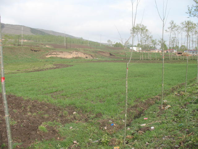 "一年之计在于春",春天也是人们耕种的季节,河对岸不远处的地里,麦苗们都发芽了,整齐的排列在田地里,给新中国的大地镶上了一块块绿色的翡翠,人们说,这里种下的是希望。