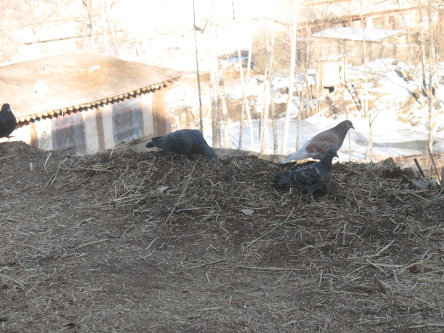 几个月前,叔叔家养了两只灰色鸽子,把它们安放在一个圆竹筛内放在了院里另一个房子的房梁上,时不时还去喂食。就在上五月的一天,我去叔叔家时,雌鸽还产下了两枚蛋,令我吃惊的是灰色鸽子尽然会产出白色的蛋。我对鸽子的好奇之情又加深了。