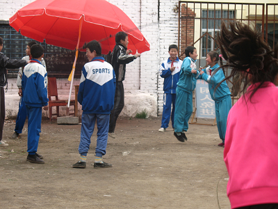 刚才同学们秩序井然的排着队,而现在,全乱了,大家一起跳,至于甩的人呢?誰把大家搅乱了誰来甩,刚甩几下有人就踩绳子了,刚停下,同学们就那么控制不住自己了,那种急迫的心情,没有人能够理解。有时,某个同学跳的怪异动作立刻会引人注目,惹的大家笑坏肚子。这十分钟的课间活动上,同学们尽情的玩着,一点都感觉不到累。