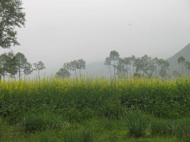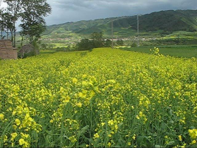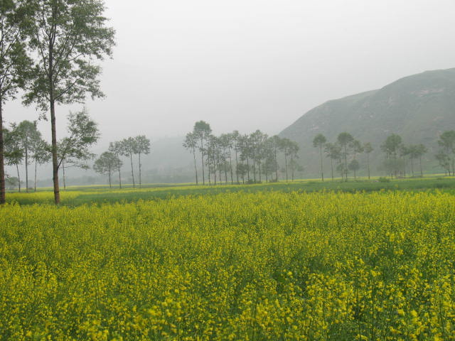 放眼望去,那一片黄色夹在一片翠绿之中,显得更醒目,像是在一条锦缎上点缀的图案一样,给乏味的景色增添了些许生气。