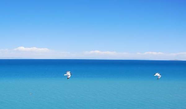 雨停了,云散了,太阳出来了,青海湖又呈现出浅蓝色,渐渐地,整个湖面在阳光的映照下,又变成了蔚蓝色。以蓝天为背景,以草原为轮廓,青海湖像被水清洗过,愈加澄澈,明净得像一枚蓝色的宝石熠熠生辉,镶嵌在天际。天空中几朵白云飘过,有群鸟飞翔,嬉戏,此时的青海湖如诗如画,真是人间仙境,我想,天堂也不过如此。此情此景,让我忘记了一切烦恼和忧愁。阵阵微风拂过,湖面上起了涟漪,不禁让人浮想联翩。