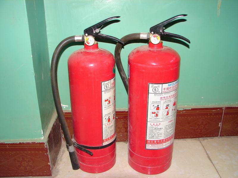 以前综合楼楼道里是不装备灭火器的,因近段时间学校申请了"安全文明和谐校园"称号后,补放了若干灭火器.可是刚摆放了一天,有些灭火器就被个别"坏"学生拔掉了销子,放了气.这把保安人员气坏了,便弄了些铁丝把销子拧住了……唉,这不更让人晕了,万一起火,这些灭火器还能打开吗?
