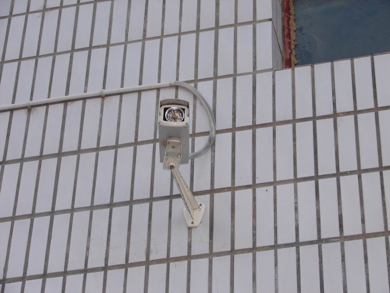 这可算是学校里最先进的安全设备了——监视摄像机。学校院落里共安装了7个这样的摄像头,监控屏在学校门房里。七个摄像头连天昼夜同时工作,一切摄录视频资料都保存在类似存储器里,共能存20天的资料。前几天,一辆存放在车棚里的自行车丢失,当把摄像资料回放时,发觉是学校里住宿学生偷走的,不用审,把偷车的学生叫来自己看了一遍摄录资料,他便全招了。嘿嘿,这才叫做"不打自招"呢。
