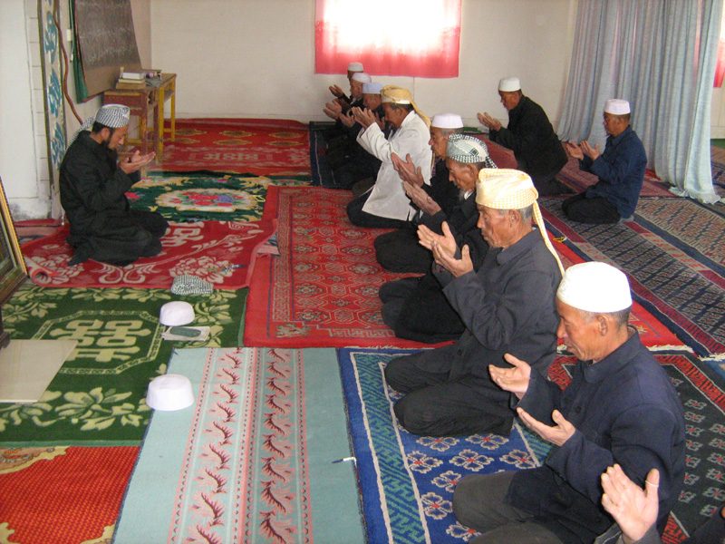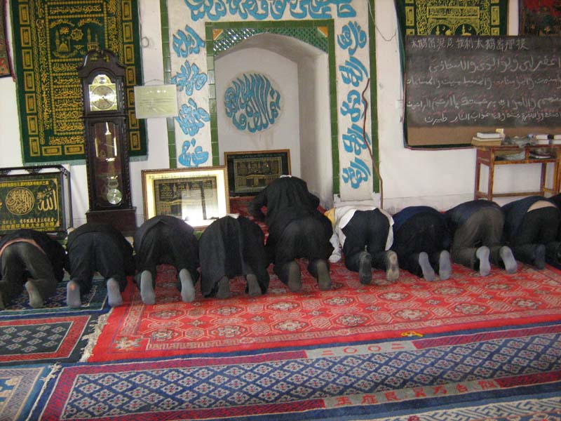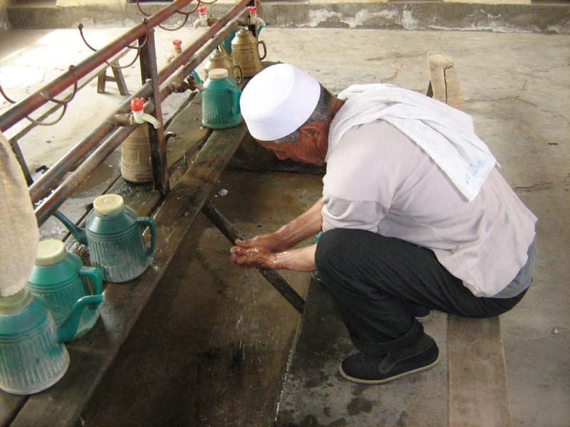 这儿也是信仰伊斯兰教回族礼拜的地方,一天要做五次礼拜,晨礼(天没有亮的时候),晌礼(中午的时侯),晡礼(太阳没有落山的时候),昏礼(太阳落山的时候),宵礼(晚上的时候),而每拜都要举意(说一些尊敬真主的话)。每天寺上的喇叭一响,村上的男人陆续来到寺里,在净身房净身。这里所说的净身是人们必须在礼拜之前,穿干净的衣服,还要洗小净(洗头,耳朵,胳膊,脚,脖子)。进寺里之前不能穿鞋,因为怕弄脏了寺里的地毯。一到星期五寺里马上就热闹起来,所有的人都来清真寺礼拜,人们心中怀着一种信仰。那信仰便是民主,平等,和平,友爱。