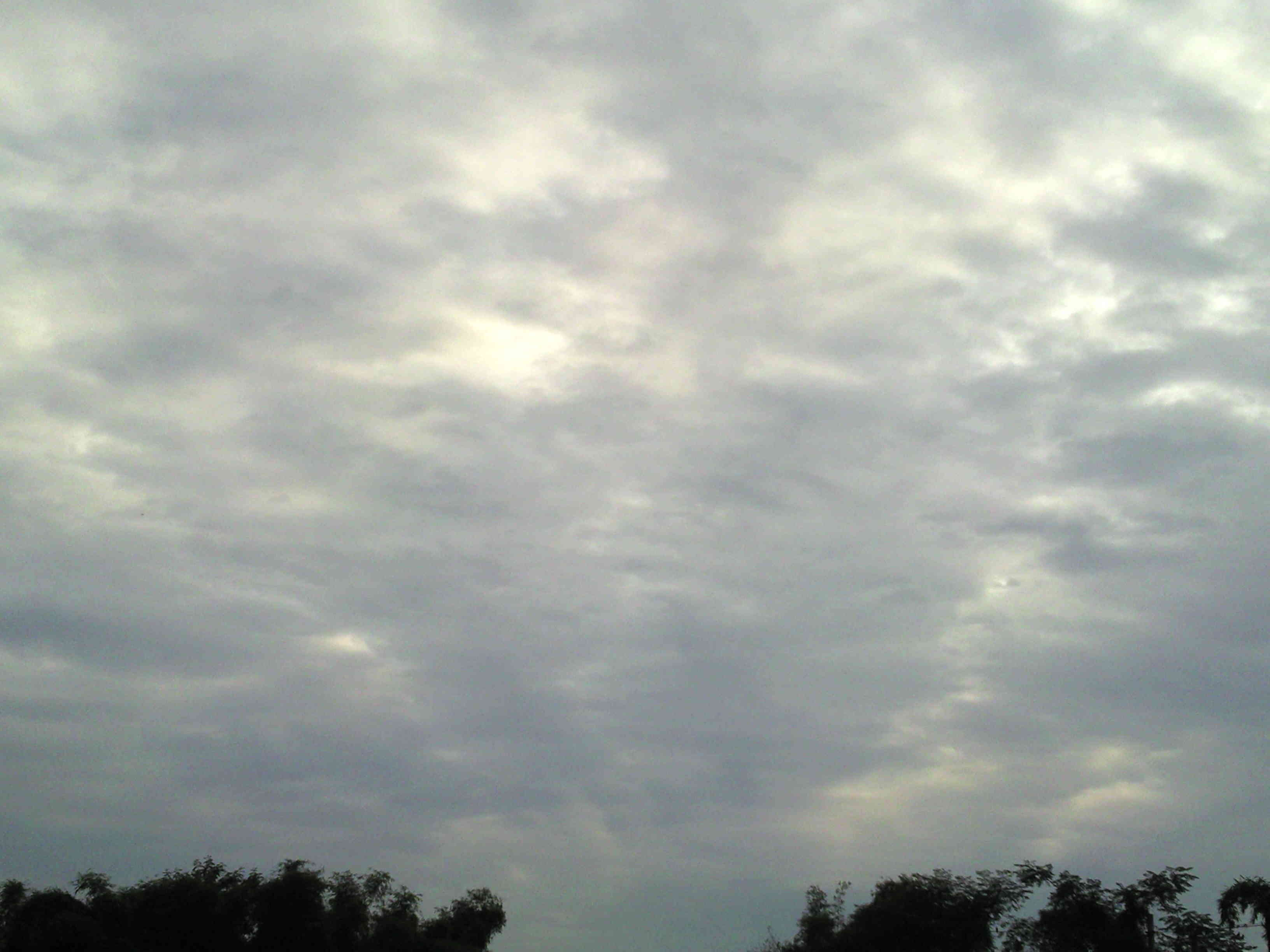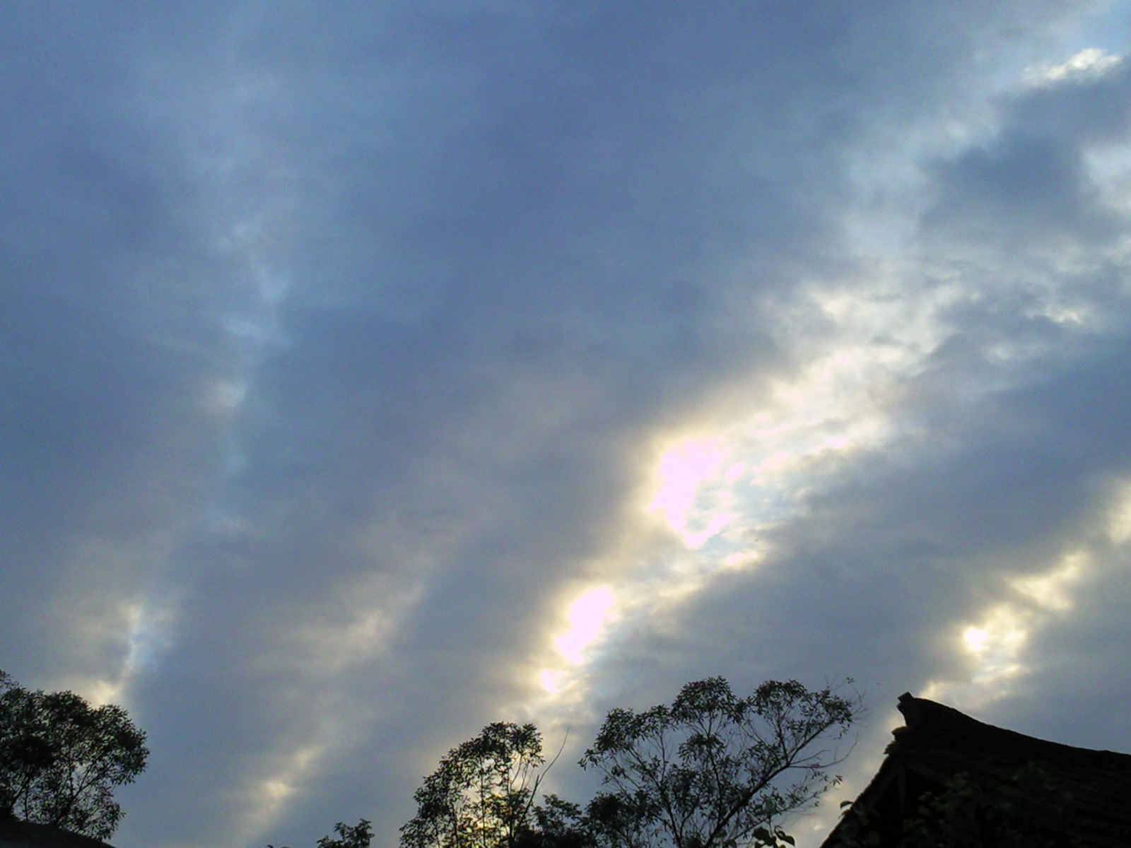 这些天我们这儿连续阴雨天,云用她黑沉沉的脸述说着她的忧伤,她的泪水把大地一次又一次地淋湿,我的心情也随着她一起低落。但就在今天早上,一切都改变了:起床一打开门我惊呆了,一缕阳光正透过树林的缝隙暖暖地照在我的脸上,抬头一看,云儿的脸早已变色,已不是往常阴沉忧伤的脸,这时的云儿象是一位心情正在转好的姑娘,愁云正在她的脸上慢慢散去。