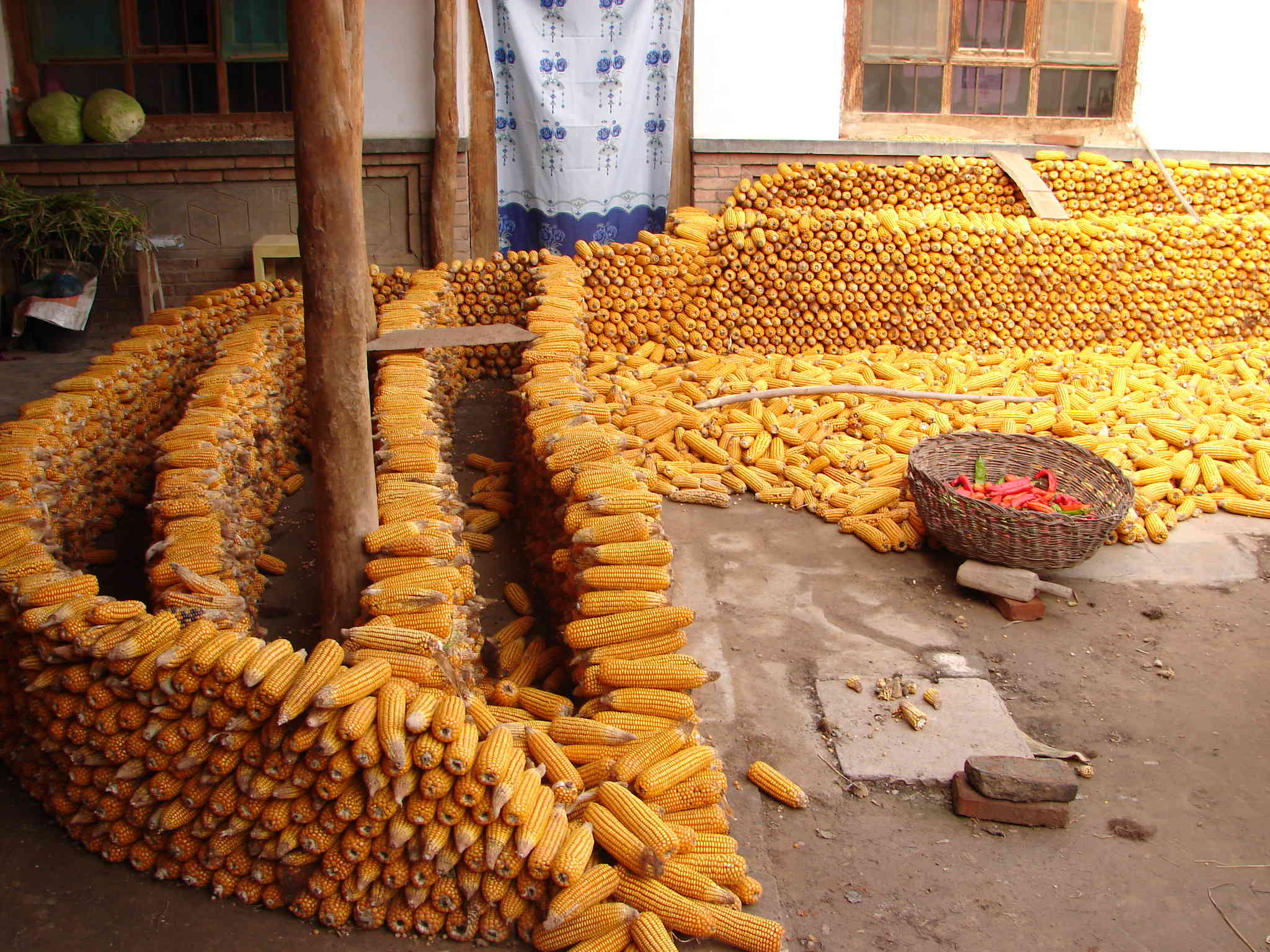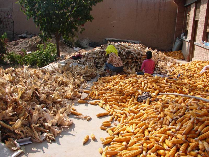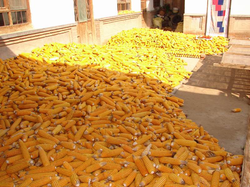 玉米剥皮后,还不能立即脱粒,得在太阳下晒大约30天后等干好后才能脱粒。今年的玉米可真得颗粒归仓呀。近2年玉米加工的渠道较多,除了作家禽、家畜的饲料外,还可榨油、造酒、造车用燃油等,因此,玉米价一路攀升,现达0.85元/斤。