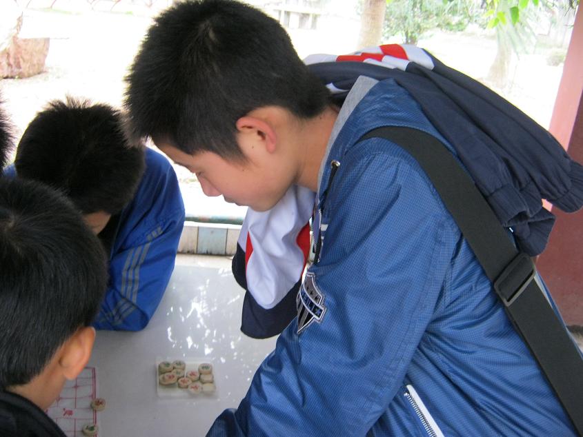 每天,我们下棋的时间都是在吃饭后和课间操后挤出来的。每天吃饭,东东都吃得很快,"战斗了(意为下棋了)"几乎成了他的口头禅,每次吃完饭,他立马就到教室摆好棋,等待对手来应战。