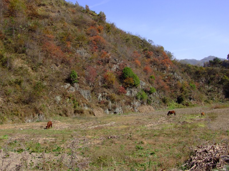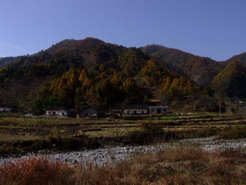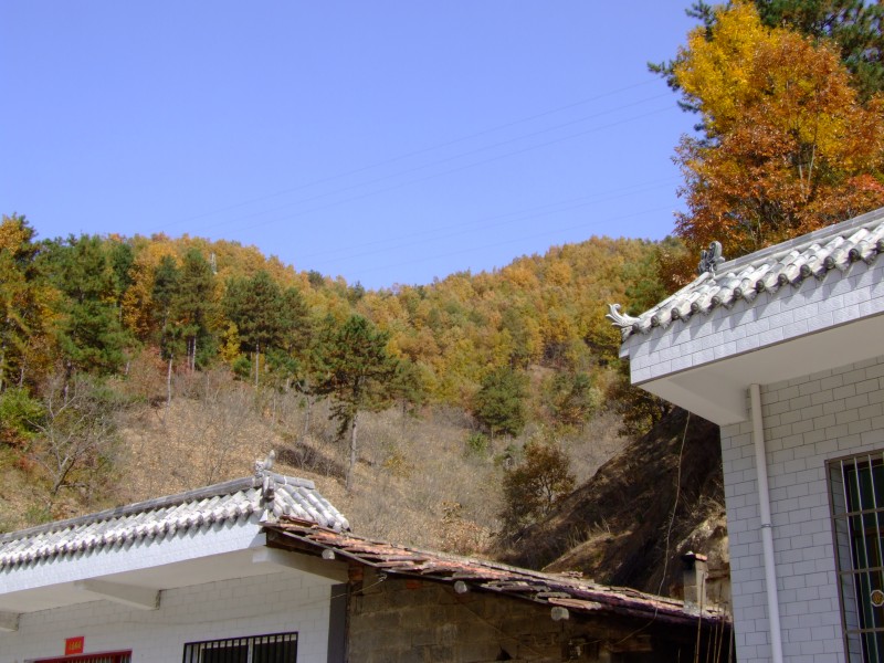 大多数房屋都建在山下,从屋顶望去,便能看见山间。山间景色甚奇,各种各样的树木会聚在一起,颜色不一。这真是大自然的妙笔啊!