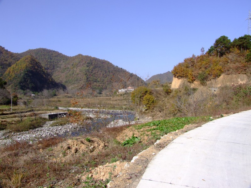 放眼望去,美景如画。高山小溪,纯朴农家。一条条河,围绕着一座座山,一座座房座落在山脚下,形成一片和谐的家园。