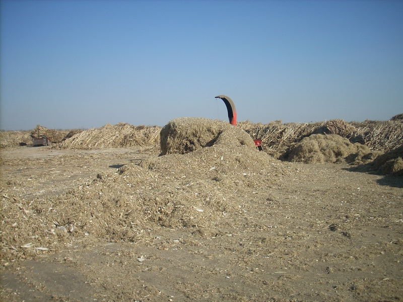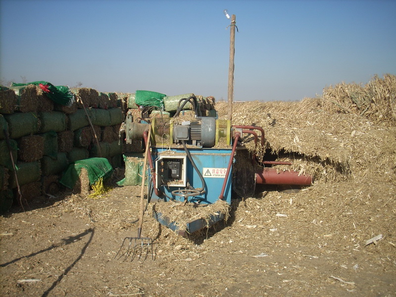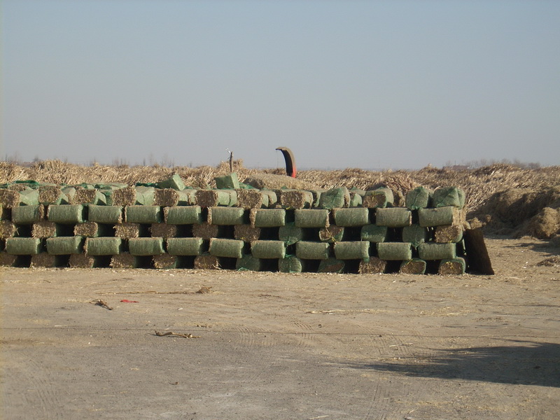 我家三叔把玉米收回家后,就把玉米杆儿捆好卖给做饲料的人。过去,没有办法处理这些玉米杆,就在田里直接用火烧,现在为了不污染环境,他们把玉米杆儿运到饲料加厂,放在一两个星期,在太阳烘晒下,玉米结杆慢慢变干后,工人叔叔就用榨草机把这些玉米粉碎后,再用打包机把这些粉碎后的饲料打成包。