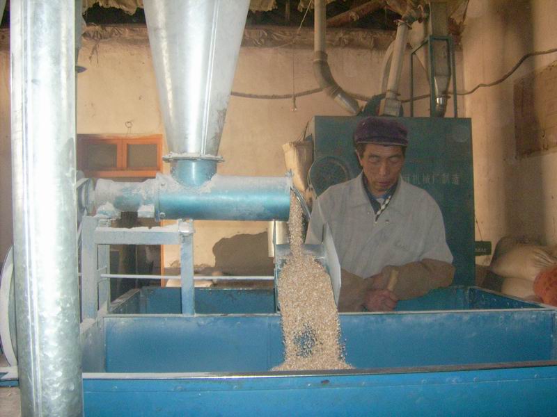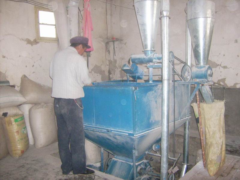 人们一年四季都在用粮食,当然也光顾了磨房不少。随时也可以看见人们用自己的车拉着粮食去磨坊磨面。在磨坊里有一位专门为大家服务的老爷爷,他指导人们首先把粮食倒入一个仓里,再把粮食口袋对在出仓口上,这时搬上闸就发出了"隆隆"的响声放入的粮食也渐渐磨碎成了面粉,不过磨出的面粉也分为三产,它们分别为白面,大麸面,还有黑面。其中的白面就是做饭和蒸馒头的,大麸面可以供养给家蓄当食物吃。在这个过程中,人还得用手不断的把粮食扶平均匀。