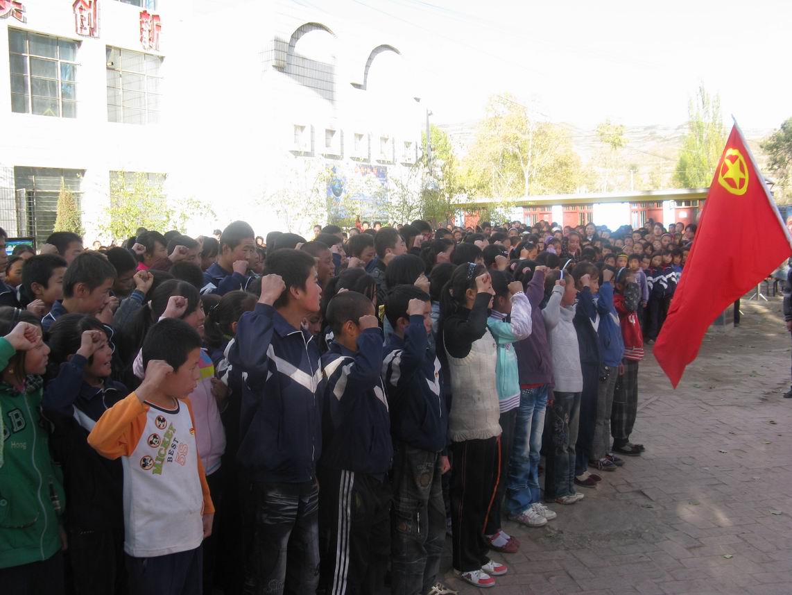 先是听到校长讲共青团组织,是一个先进的组织,是一青年人的组织……然后校长就要开始宣布我们这次加入共青团的名单,我高兴地听到了马明才三个字,然后老师们给我们佩戴团徽,当赵老师给我戴上的时候,我内心无比的激动。