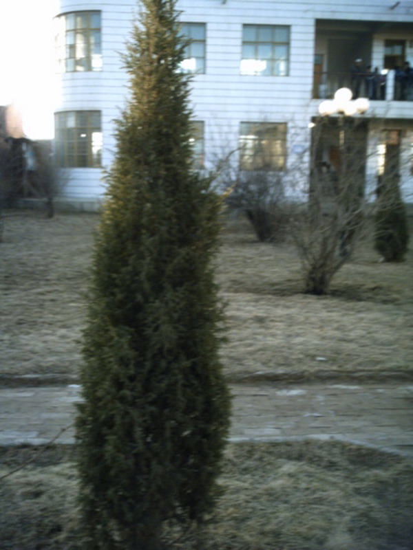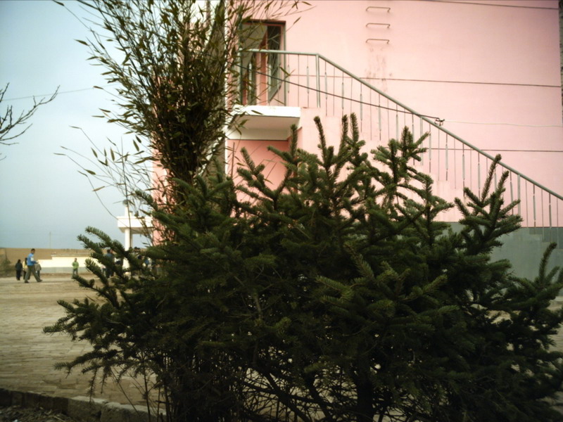 秋天到了,植物都枯黄了,而松树还在打扮着校园,使校园变得清洁美丽。