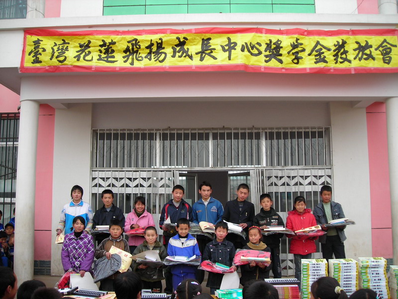 现在,上学的路更宽了,学校中的贫困学生得到了由"千乡万才"和"花莲飞扬少年成长中心"的资助,努力学习就可以得到奖学金,我们再也不怕没钱,没有书籍了。