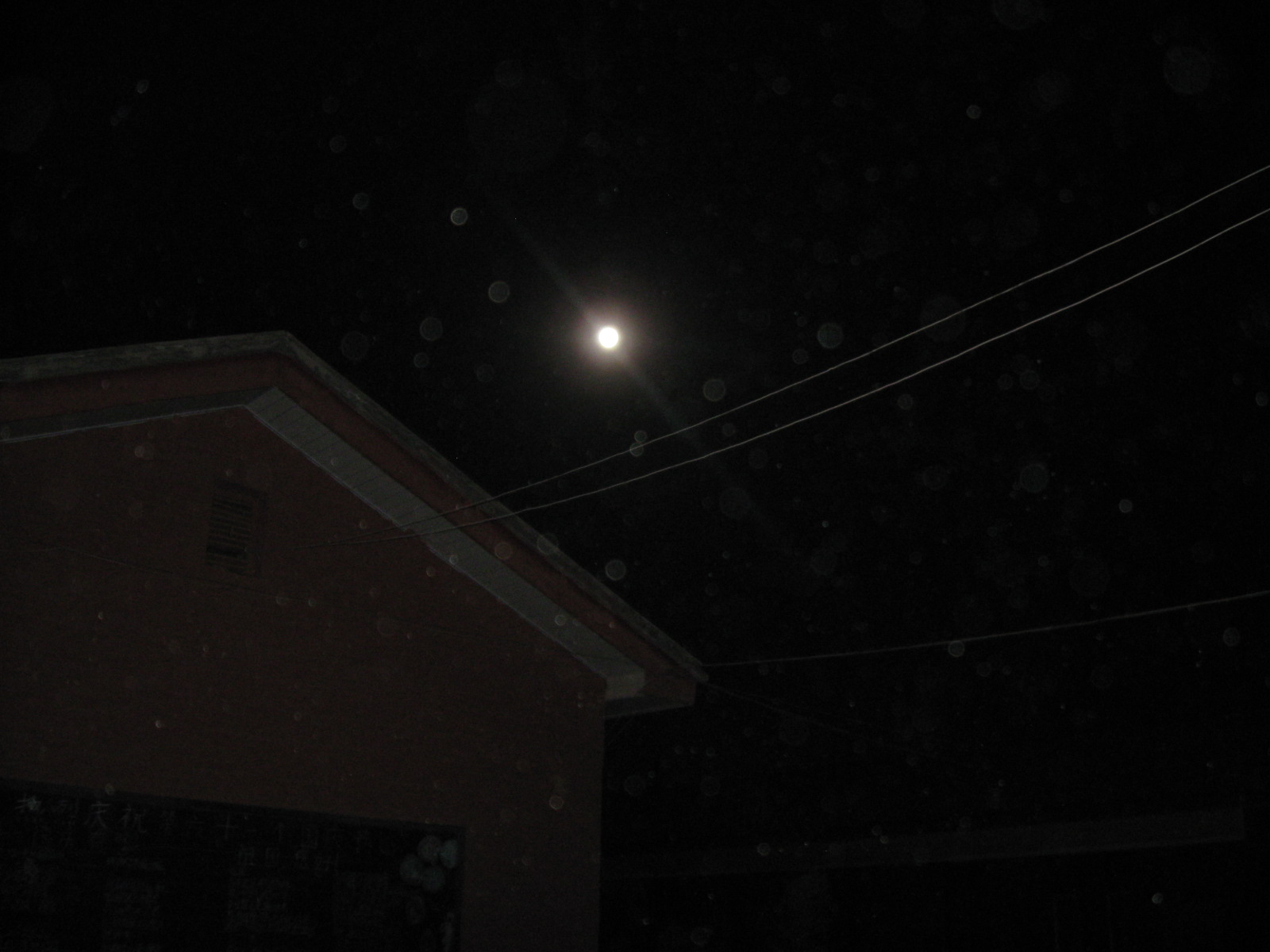 天色渐渐的黯淡了下来,一轮金黄的圆月似无阻碍的升上了天空。大地一片寂静,偶尔传来一两声野鸟的叫声。丝丝的凉风开始入侵,阵阵的寒意肆无忌惮的攻击。月亮照在雪上,呈现出一幅雪上月夜图,令人回味无穷。