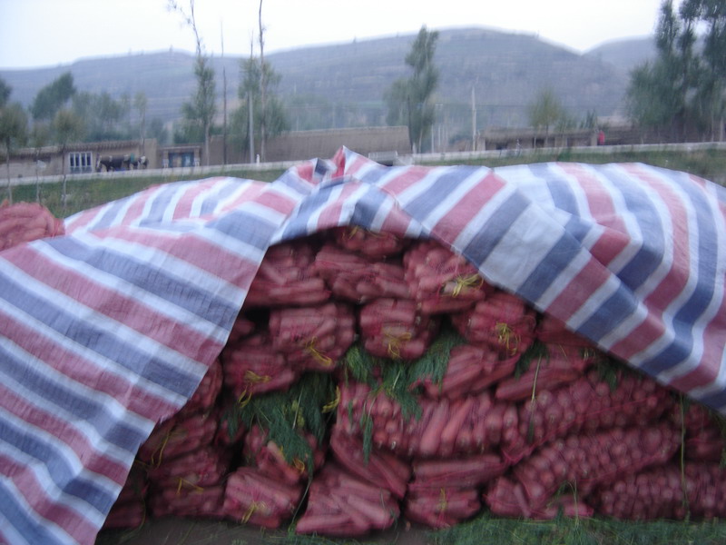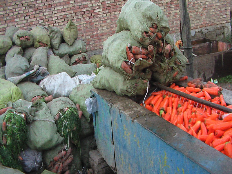 将胡萝卜从地里挖出后就可以洗胡萝卜和包装,你别看刚挖出来的胡萝卜灰尘尘的,但经过用水冲洗后,胡萝卜就变得金灿灿的好看极了。经过包装就可以出售了。
