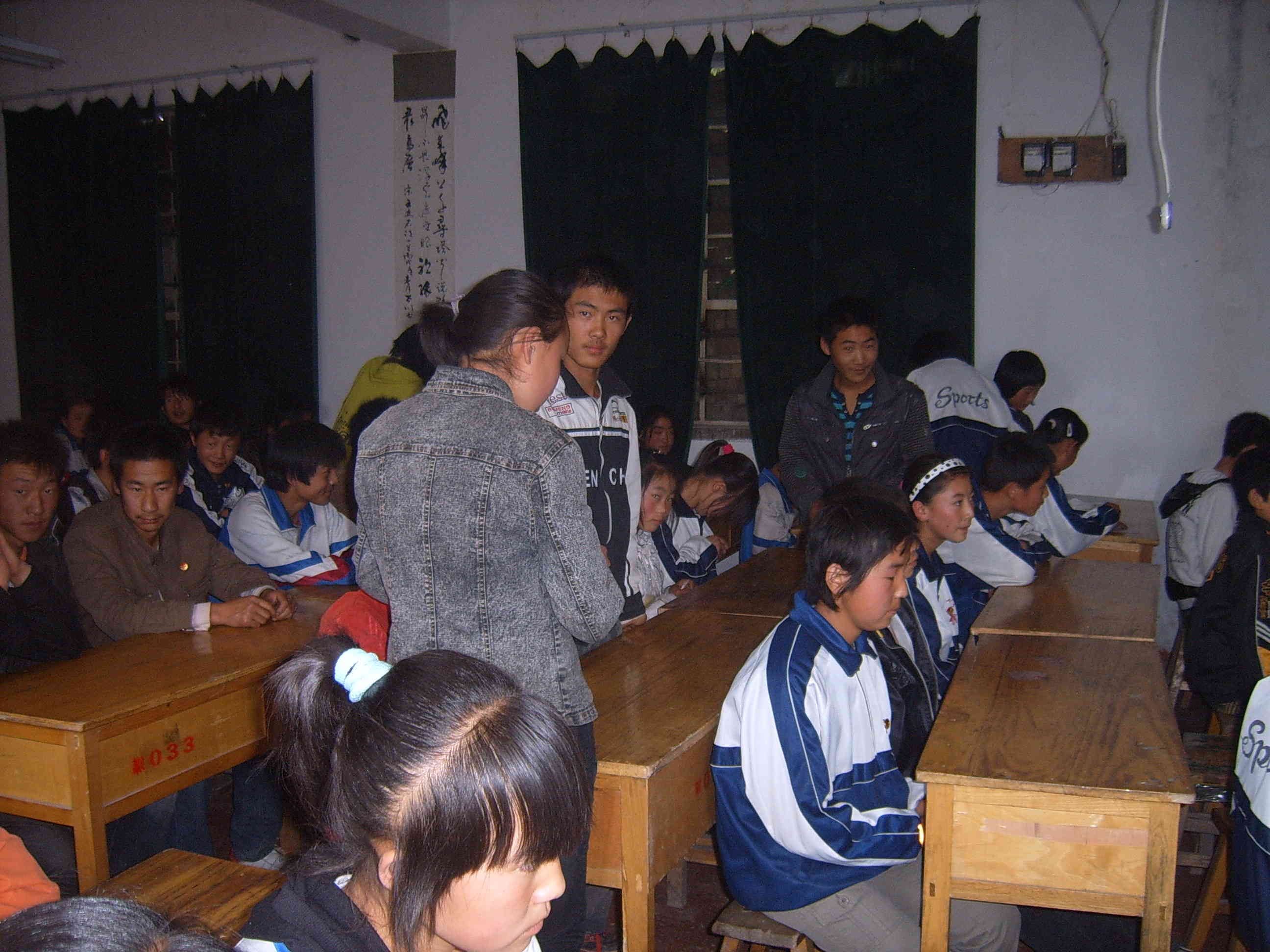 老师走上讲台,把文具盒和调色板放在讲桌上,把范画靠在黑板上。班长立刻喊道:"起立!"同学们不约而同的站起来,老师和同学们互相问好后,开始上美术课了。