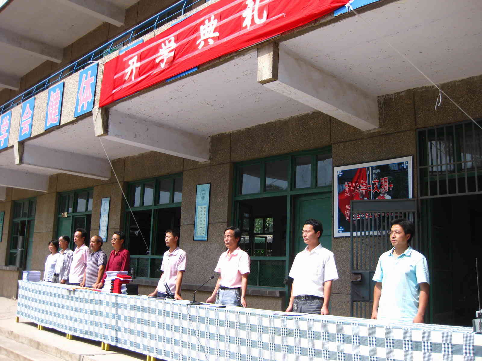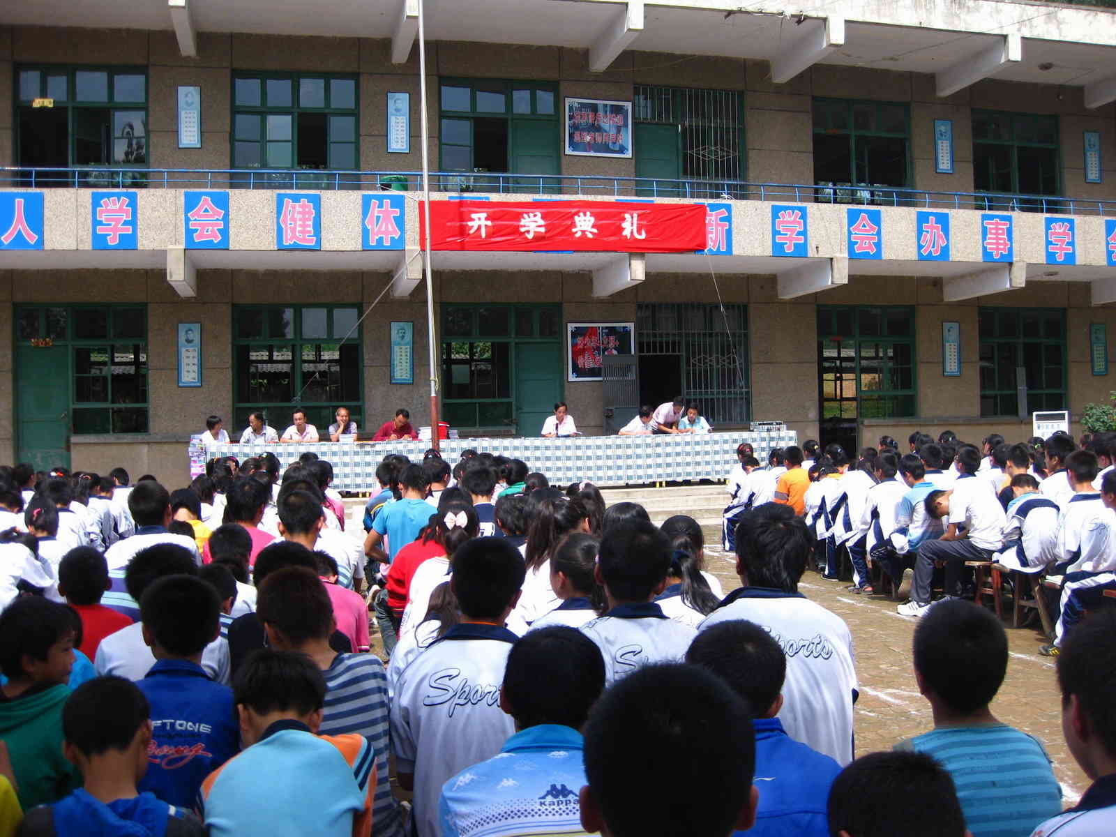 下午我们一到校,就看见已经准备好的会场。大会开始了杨老师先放国歌我们全体师生起立,听完国歌我们就整齐的坐在自己的位置上。