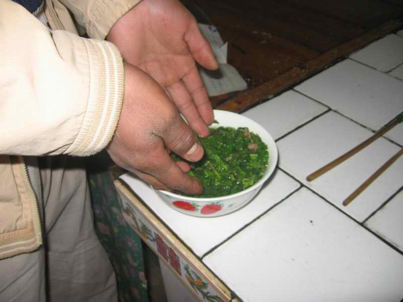 晾干后,再把它切成碎片。