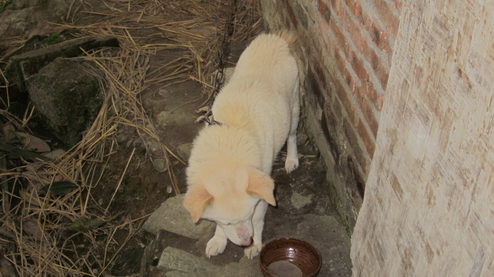 小白一天天长大了,已经能看家了。因为怕它伤害到别人,外婆用铁链把它拴了起来。有陌生人来,它就会用叫声报信,也就不怕它伤害到无辜的人了。