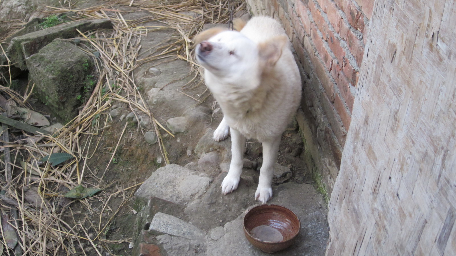 小白很会讨乖,每次在外婆家吃饭的时候它就会静静的守在桌子底下,也不出声。只要看见我夹好吃的肉,它就会用那水灵灵的眼睛望着我,然后再拿它的嘴巴轻轻的磨蹭我的裤脚,小尾巴摇个不停。看它讨好我那么卖力的样子,我心里乐滋滋的,就扔给它一块肉,它一下子拾起来不加咀嚼的就咽了下去。我在心里想,它一定连肉是什么味道都没有尝出来吧。小白就这么守着我们吃完饭,直到外公把它的饭给它盛去。