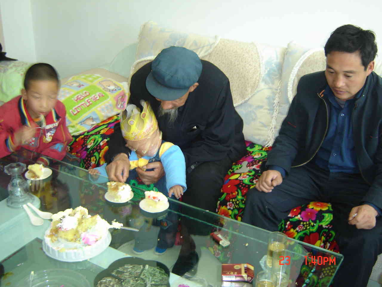 接着就是吃我最喜欢的蛋糕,弟弟也吃得津津有味,妈妈怕他吃坏了,不让吃了就听见哇哇的哭声。接下来就吃肉喝酒了,叔叔们开始猜拳,我们当然就开开心心的玩了整个一下午。