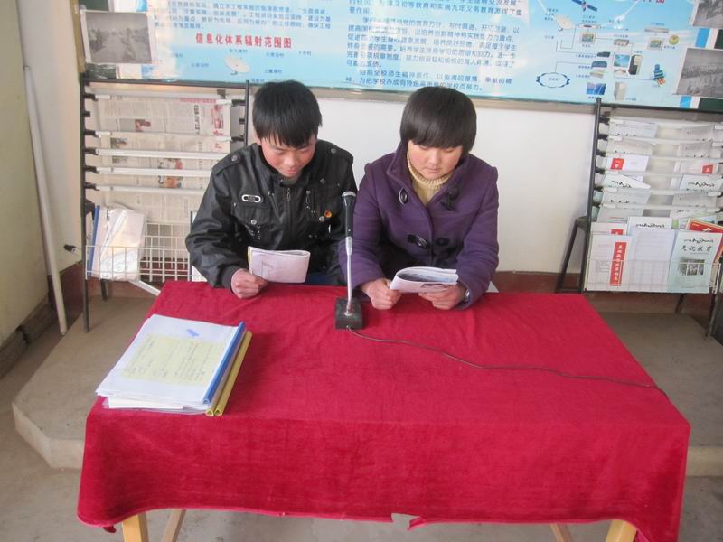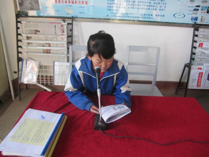 在我们东大滩学校成立了一个"百花园"校园广播站,每天下午都会播一些关于学校的事,主要负责管理的是昝老师,我们一共有10位主持人,小主持人每天都会按时到岗主持,自从成立了广播站后,主持人们都尽心尽力做好自己的工作。广播站的开播不仅丰富了校园文化生活,还锻炼了我们这些小主持人的能力。