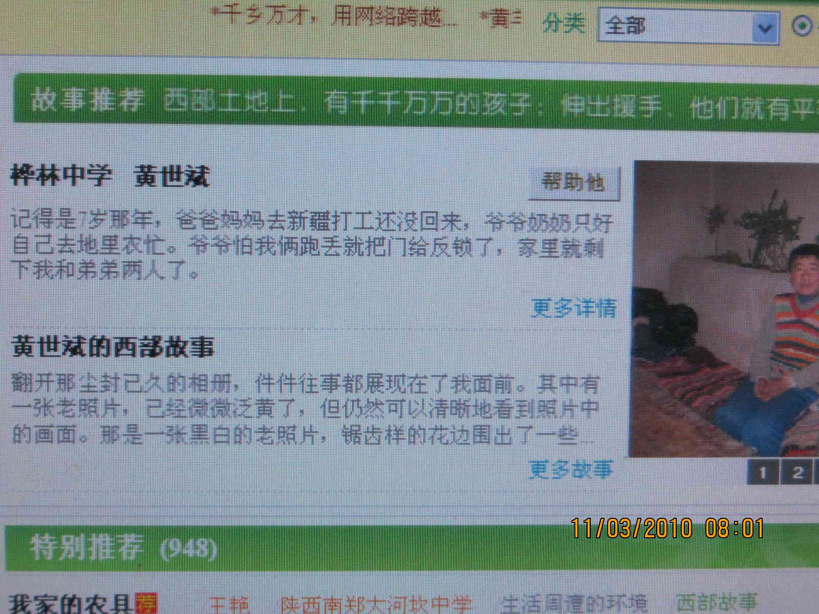 两年前,老师帮助我们加入了西部故事,初步的认识充满迷惘,新奇的电脑是那么的神奇。两年了,我的确了解了西部故事,认识了它。这个网站让我们西部的孩子记录生活中的点滴,再让更多人去了解西部,了解西部农村的孩子。我是一个农村的孩子,乡村的落寞与自闭使我们远离城市文明,远离先进的科学文化,也让城市的孩子远离了淳朴,远离了自然。但是因为有这个平台,让乡村的事走进了网络,传遍了城市的角角落落,我们之间的距离近了。