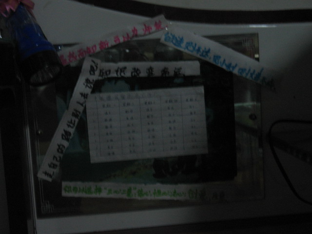 看正前方,有一张风景图画,有象征未来希望的绿色,有气势磅礴的瀑布激励着我前进的步伐。不过有一部分被我的课程表和人生格言霸占了,它们可不是吃素的,我一放松它们就跳出来警告我。"温故而知新,可以为师矣。"唉,我只得乖乖复习。当然它们当中我最信、最喜欢的一条是"知识改变命运",它是我奋斗的动力。