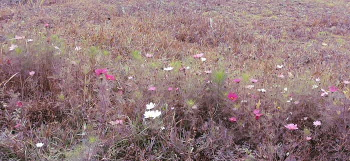 山上的野花遍地都是:有名字的,没名字的,都散在草丛里了,非常好看,让人们情不自禁地想摘一朵。