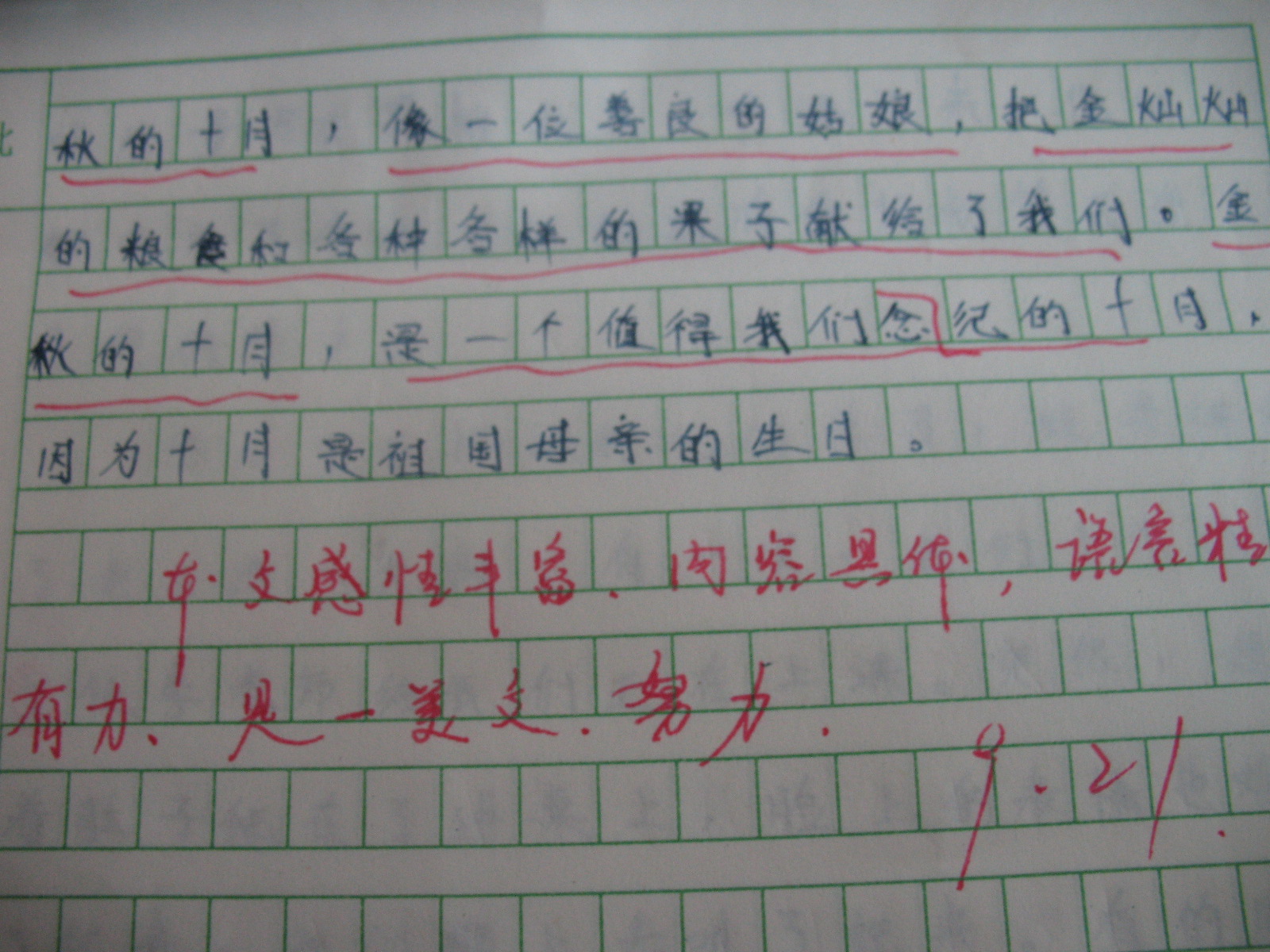 自从我参加了西部故事后,在老师的帮助和家长的支持下,我的作文有了一点进步,我感到非常开心。