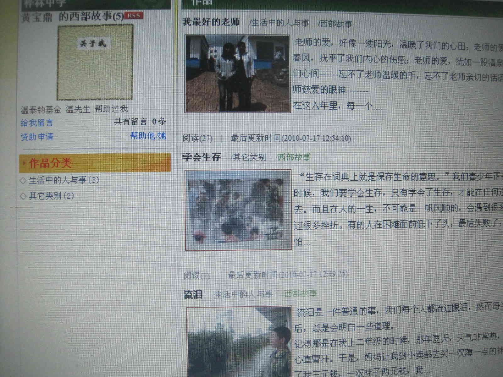 我是一个很爱写作的人,但不管我怎样努力都写不出一手好文章,当参加什么作文比赛时,我总是拿不到名次,这让我非常失望,就在我快要放弃的时候,前方出现了一点亮光,让我毫不犹豫地扑过去,这就是参加西部故事的开始。
