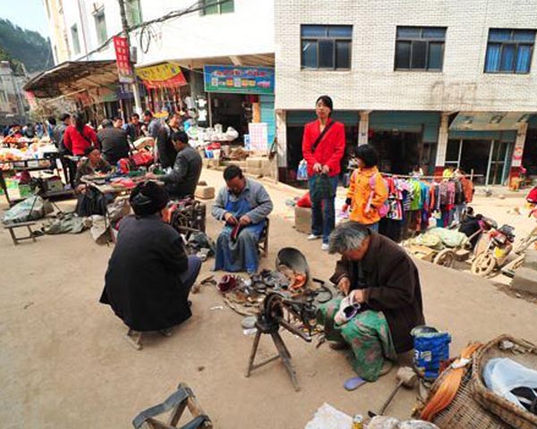 小镇不赶集的时候,店铺也少的可怜。可是到了赶集的那天,那条街就会人流如织,非常热闹。所有的店铺在那天都会开门,还有一些流商也来摆地摊做生意。