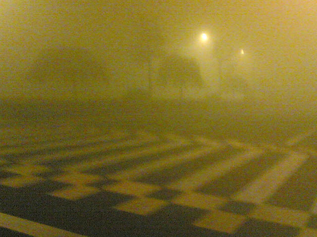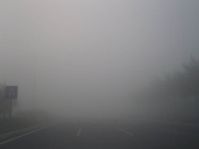 远远的看去,就像洁白的棉花团。往下看,只能隐约看到路边的几个人在走动。看到这一边却看不到那一边。这雾真像占霸了整个天,整个地,整个天下。