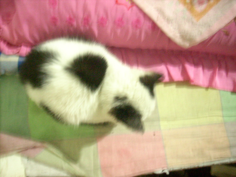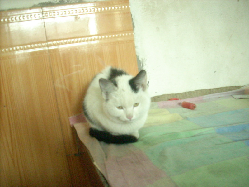 它的毛由黑色和白色组成,一条又细又长的尾巴很会炫耀,它一只耳朵是白色,一只是黑色。上次妈妈给爸爸染头的时候,把那只白色的耳朵也染成黑色,妈妈说:“这样才漂亮。”