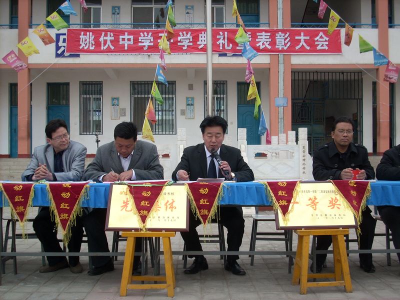 2011年3月11日,阳光明媚,天气比较温暖,我校踏着春天的脚步,在开学第二周举行了隆重的开学典礼及表彰优秀教师、学生大会。 去年,我校取得了喜人的成绩,年终考核居全县第一名,获"课堂教学质量工程"一等奖,这是我校师生共同努力的结果。成绩只能说明过去,本学校还需继续努力。为了鼓舞师生继续工作学习,在开学典礼上,把这些奖牌展示出来了,当时,我们每个人都很高兴,但是,又想保持这些荣誉,还很难。