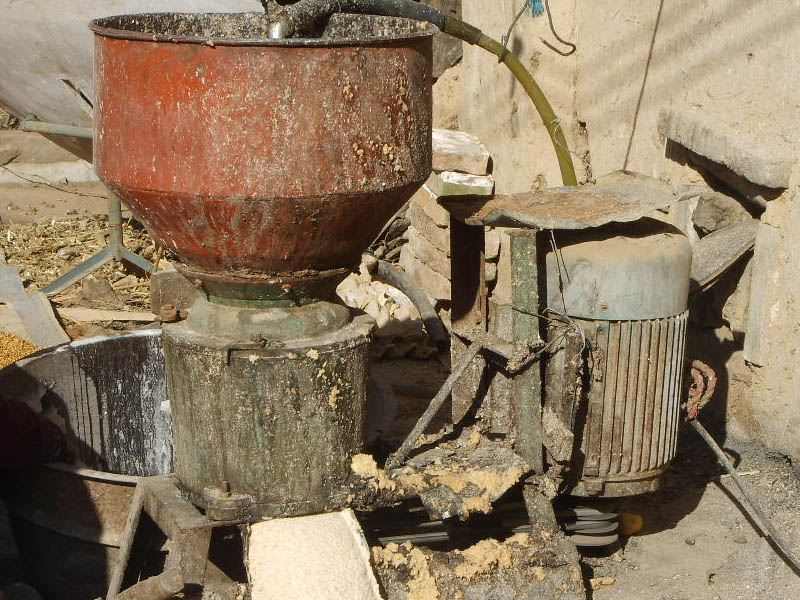到了丰收的季节,人们把洋芋从地里拾回家,分成一二三等,大洋芋留给自己吃,小洋芋卖掉,剩下的二等洋芋就拉到专门粉洋芋的场子,花些钱碾成粉末状,把粉出来的渣放在一边,剩下的另一部分就是洋芋粉和水了。