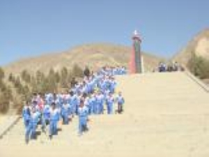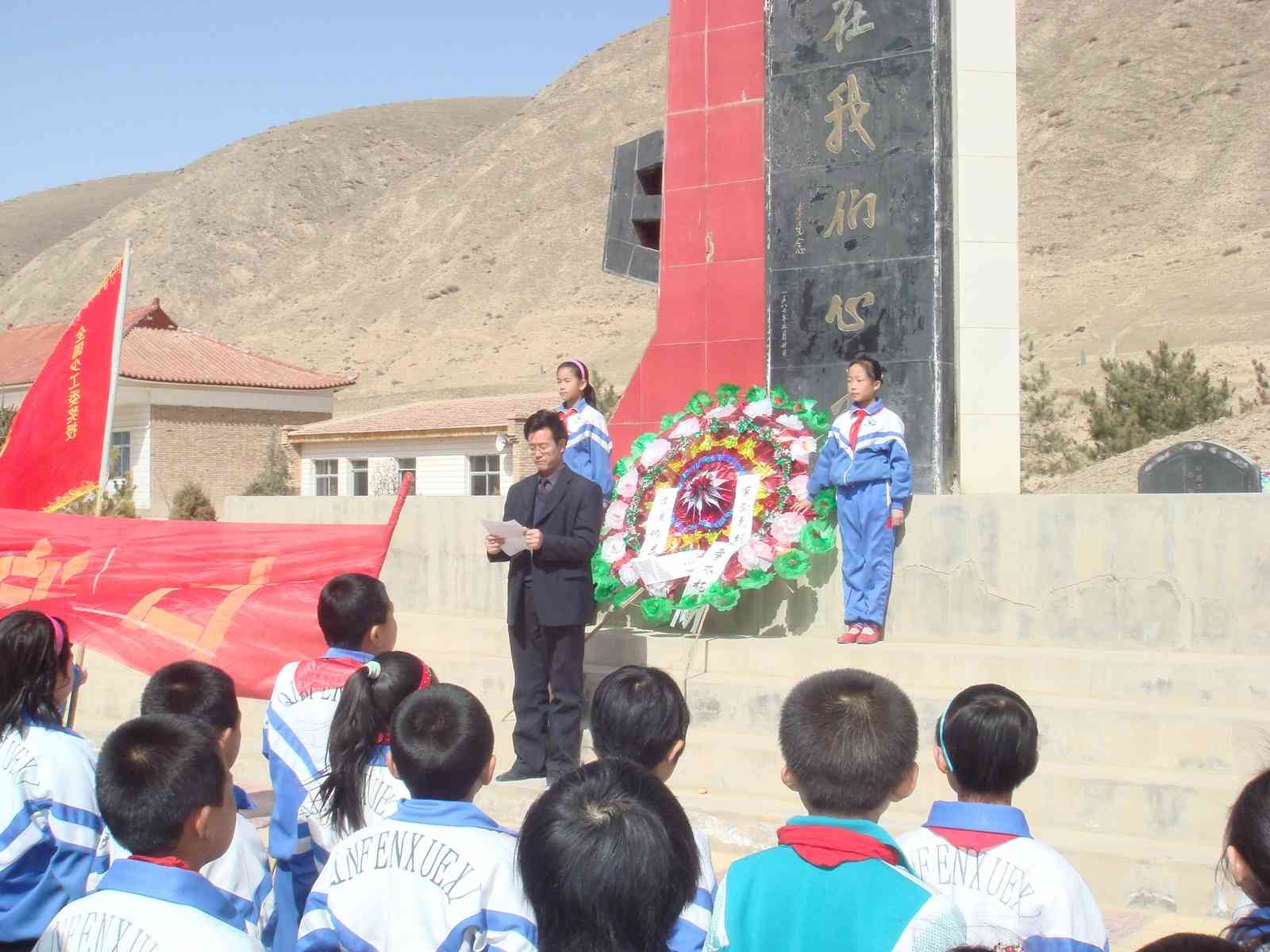 那天早晨阳光明媚,我们在班主任和辅导员老师的带领下,兴冲冲地向位于古浪县城西南角的烈士陵园走去。一路上我们高唱着革命歌曲,雄赳赳,气昂昂。不知不觉中,我们已到了烈士陵园。白云在天上衬托着碧空,绿草在地上装扮着松柏,一切春意盎然。